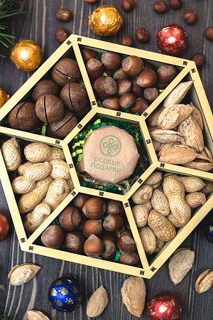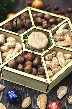 Орехи и мед - самый полезный и питательный подарок! Здоровый перекус дома или в офисе упакован в красивую деревянную шкатулку, которой можно долго пользоваться после употребления "основного состава". Логотип или пожелание на крышке будут сопровождать получателя подарка в его жизни и приятно напоминать о дарителе. Элегантный набор с шикарным вкусовым наполнением понравится всем ценителям еды.