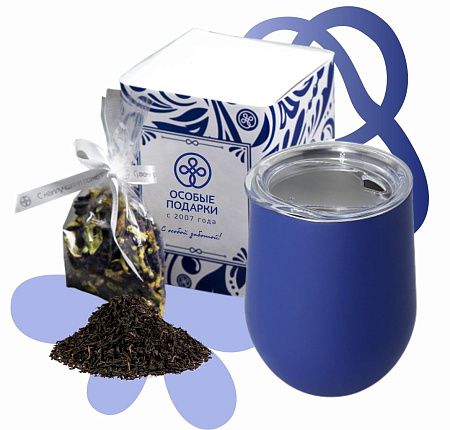 Набор для теплоты отношений. Универсальная ёмкость - кофер, из которой можно пить кофе или чай, смузи или коктейль, заваривать кашу или гранолу. Кофер сохраняет холод и тепло за счет двойных стенок из пищевой стали. В состав набора так же входит удивительный по своим свойствам чай «Анчан» - он не содержит кофеина и буквально ошеломляет своим насыщенным синим цветом в чашке, а если добавить к нему несколько капель лимонного сока, цвет напитка изменится на пурпурно-фиолетовый.