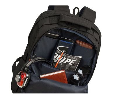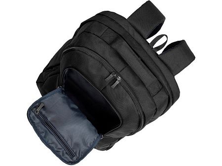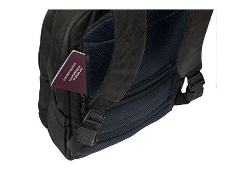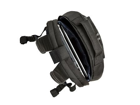 • Основное отделение для ноутбука с вертикальной загрузкой, имеет мягкие стенки и ремень для надежной фиксации ноутбука до 17".
