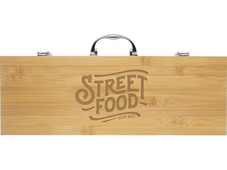 лопатка 40 x 9,5 см, щипцы 34,5 x 6 см, вилка 38,5 x 3 см, нож 38,5 x 3 см, щетка (38 x 4,3 см