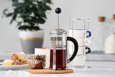 внутренняя часть - нержавеющая сталь, 304; каркас - нержавеющая сталь, 201; колба - боросиликатное стекло; ручка - пластик