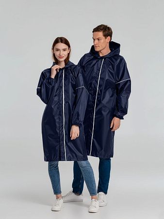 Плащ-дождевик из ткани оксфорд на кнопках с капюшоном. Световозвращающие элементы на рукавах и планке позволяют быть замеченным в темное время суток. Подготовим для вас технический макет с размещением лого или другого