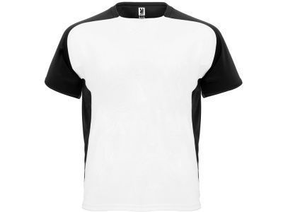 Спортивная футболка с коротким рукавом реглан. Круглый вырез горловины. Контрастные рукава и боковые вставки.
