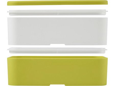 Порадуйте себя этим двухслойным ланчбоксом MIYO ! Состоящий из одного или двух оснований объемом 700 мл, он имеет много места для бутербродов, фруктов, салатов и многого другого, и все это удерживается на месте благодаря ремешку из переработанного ПЭТ. Доступны другие цветовые комбинации и аксессуары, такие как ложко-вилка и внутренний отсек, для получения дополнительной информации свяжитесь с нами. Подходит для использования в микроволновке, мытья в посудомоечной машине, не содержит BPA и полностью пригоден к переработке.