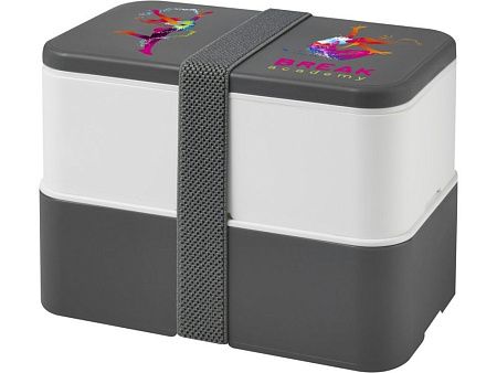 Порадуйте себя этим двухслойным ланчбоксом MIYO ! Состоящий из одного или двух оснований объемом 700 мл, он имеет много места для бутербродов, фруктов, салатов и многого другого, и все это удерживается на месте благодаря ремешку из переработанного ПЭТ. Доступны другие цветовые комбинации и аксессуары, такие как ложко-вилка и внутренний отсек, для получения дополнительной информации свяжитесь с нами. Подходит для использования в микроволновке, мытья в посудомоечной машине, не содержит BPA и полностью пригоден к переработке.