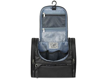 Функциональная организация: основное отделение на молнии с 3 сетчатыми карманами, сетчатое отделение на молнии, прозрачное отделение на молнии, крючок для подвешивания, 2 боковых отделения на молнии, передний карман на молнии, ручка.