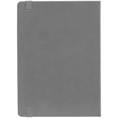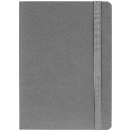Ежедневник с твердой обложкой, выполнен из материала Latte, серый СС, обрез серого цвета, дополнен резинкой и ляссе серого цвета.