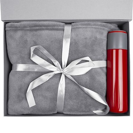 термос - нержавеющая сталь, корпус; пластик, крышка; плед - полиэстер 100%, длинноворсный флис, 220 г/м²; коробка - переплетный картон