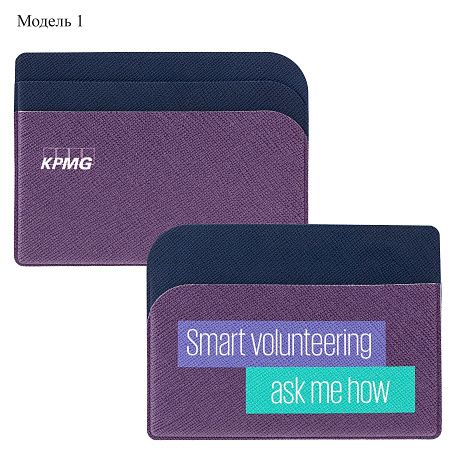Модель 1: материал искусственная кожа (Saffiano), спайка, размер вкладыша 8,6x5,4 см, внешний размер изделия 10х7,3 см, 3 кармана, блинтовое тиснение / полноцветная печать, аналог