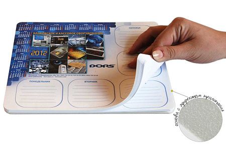 Коврик для мыши с отрывным блоком - удобный и практичный настольный сувенир, который постоянно находится перед глазами. На коврик можно записывать любую информацию.