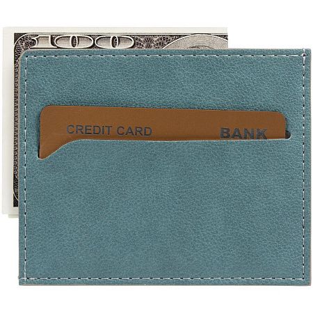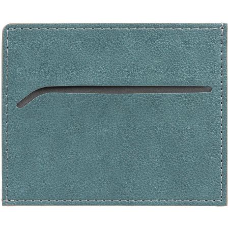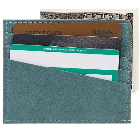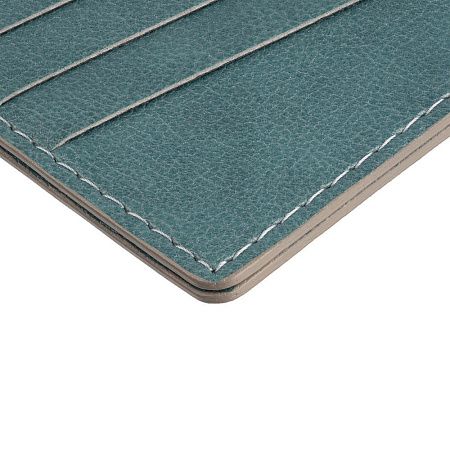 Чехол выполнен из материала Petrus, синий НН, дополнен окрашенным срезом края и внутренним карманом из серого картона. Имеет 4 отделения для кредитных карт и 1 отделение для купюр.