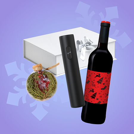 Подарочный набор «Закатное солнце» — это идеальный подарок для ценителей комфорта. В набор входят электрический штопор который позволит открыть бутылку вина без усилий и ёлочная игрушка-панно которая подарит вам ощущение приближающегося праздника.