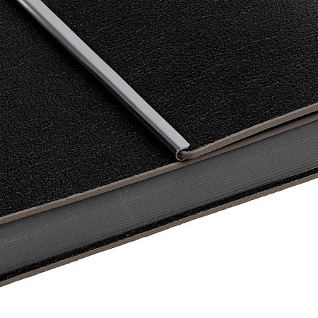 Ежедневник с гибкой обложкой, клапаном на магните и металлической отделкой клапана. Выполнен из материала Petrus, серый СС, дополнен серым ляссе.