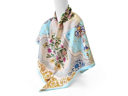 Принт аксессуара образуют знаменитые орнаменты востока — гирих (бесконечный “узел”) и ислими (“путь в божественный сад”). Непрерывные витиеватые линии в сочетании с узорами из гибких стеблей с зеленой листвой и пестрыми соцветиями завораживают, погружают в состояние медитации, постижения тайны мироздания через призму счастья и красоты.