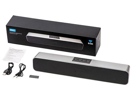 колонка, зарядный кабель micro usb, кабель aux, шильдик для печати