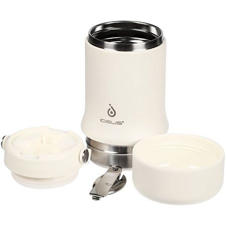 корпус - нержавеющая сталь, 18/8; крышка - пластик, пищевой силикон; ручка - полиуретан, термопластичный; ложка - нержавеющая сталь