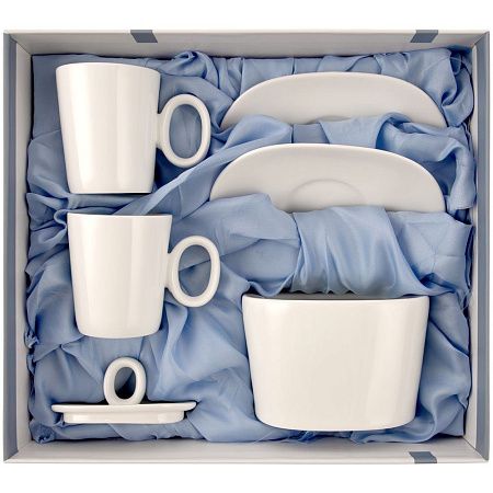 В комплекте 2 кофейных пары и сахарница.