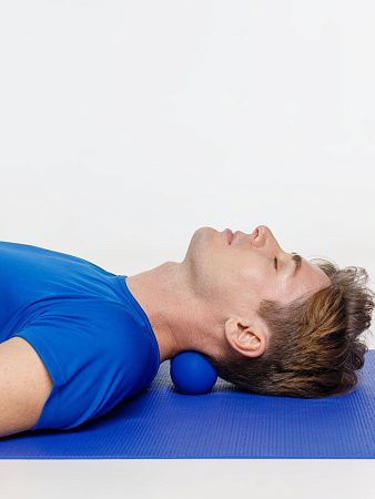 - Двойной синий мячик воздействует на мышцы вдоль позвоночника и шеи, мягко выравнивает осанку. Специальная выемка между мячиками предусмотрена, чтобы обезопасить и не травмировать позвоночник во время упражнений.