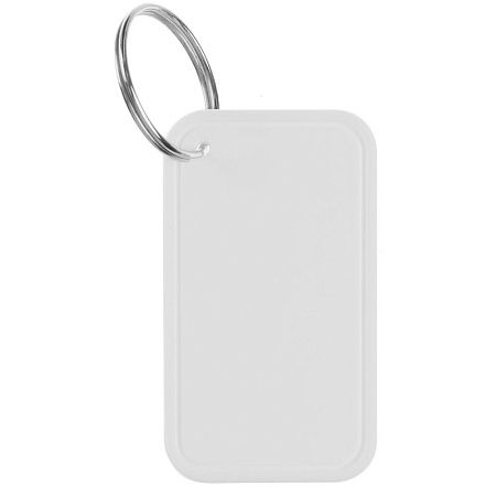 Лаконичный брелок из полипропилена с металлическим кольцом.