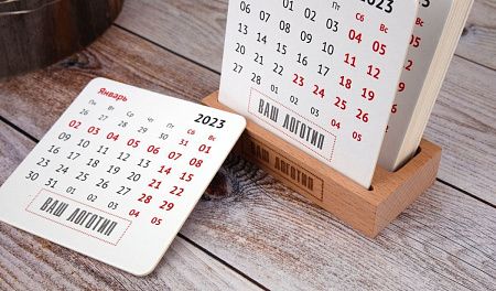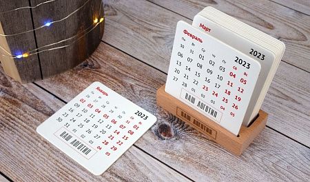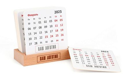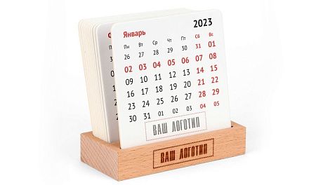 Размеры: деревянная подставка 105х72х20 мм, календарь: 90х90 мм