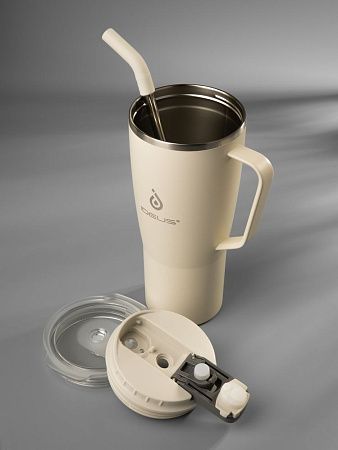 корпус - нержавеющая сталь, 18/8; крышка - пластик; трубочка - нержавеющая сталь, пищевой силикон