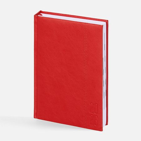 Ежедневник с твердой обложкой с поролоном из искусственной кожи, дополнен декоративной строчкой, капталом и ляссе в цвет ежедневника.