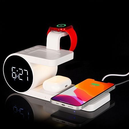 Зарядная станция совместима со всеми смартфонами, поддерживающими технологию беспроводной зарядки Qi. Также предусмотрено место для зарядки часов Apple Watch и всех типов наушников с поддержкой Qi. Зарядка начнется автоматически при размещении устройств на индукционной площадке.