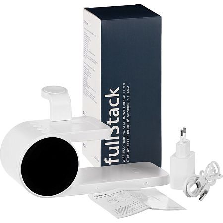 fullStack — технологичное многофункциональное устройство, которое сразу сочетает в себе станцию беспроводной зарядки разнообразных устройств, электронные часы с будильником и ночную лампу.