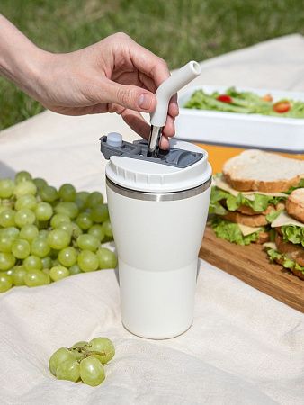корпус - нержавеющая сталь, 18/8; крышка - пластик; трубочка - нержавеющая сталь, пищевой силикон