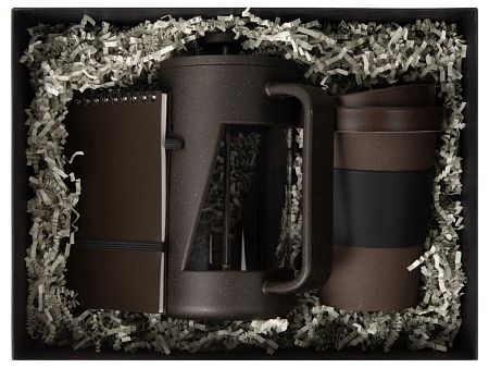 стакан, френч пресс, блокнот, наполнитель, коробка