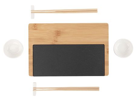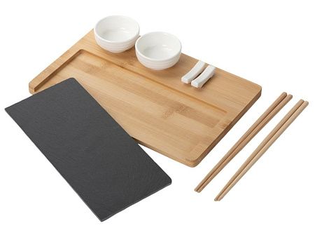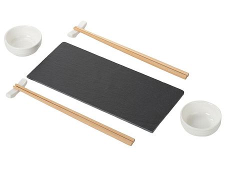 подставка из бамбука и сланца, керамическая соусница 2 шт., набор палочек для суши 2 шт., подставки для палочек 2 шт.