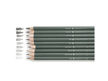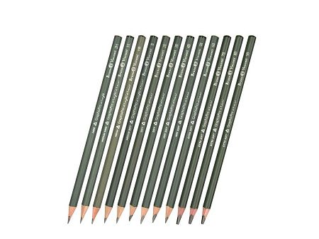 12 карандашей разной твердости (2h, h, hb, b, 2b, 3b, 4b, 5b, 6b, 7b, 8b, 9b), металлическая коробка