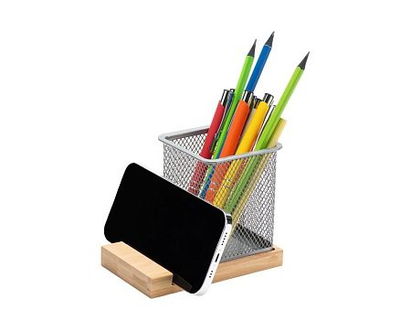 алюминиевая подставка 8 х 8 х 9,5 см, бамбуковая подставка 13 х 7,8 х 1,8 см, выемка для телефона 1,2 см