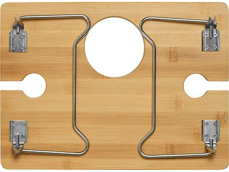 Представьте, как вы наслаждаетесь закатом с бокалом любимого вина, не беспокоясь о том, что его можно опрокинуть. Этот элегантный столик оснащен двумя специальными углублениями для надежной фиксации бокалов, а центральное отверстие идеально подходит для устойчивой установки бутылки.