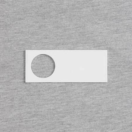 - сделать нанесение на изделии, поверх которого нашить лейбл так, чтобы вырубка стала частью целостного уникального дизайна.