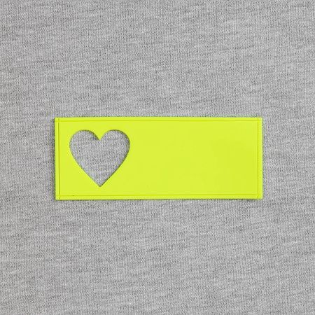 - сделать нанесение на изделии, поверх которого нашить лейбл так, чтобы вырубка стала частью целостного и уникального дизайна.