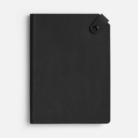 Ежедневник с гибкой обложкой, выполнен из материала Espresso, дополнен ляссе черного цвета и хлястиком на кнопке.