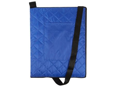 Двухсторонний плед с водоотталкивающим покрытием с одной стороны и мягким флисом с другой. Складывается в сумку на плечо и фиксируется с помощью молнии. В собранном виде имеет регулируемый по длине ремень для переноски и наружный карман для мелочей.