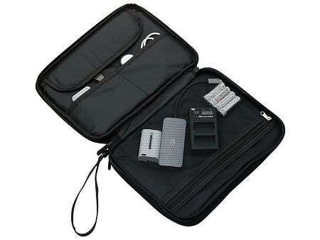 Он имеет два независимых отделения на молнии, каждое из которых оснащено множеством кармашков и отделений разной формы. Это позволяет удобно разместить провода, зарядные устройства, наушники, флешки и другие мелкие гаджеты, предотвращая их запутывание и повреждение.