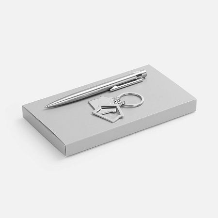 ручка - сталь, переработанная; брелок - металл; коробка - картон