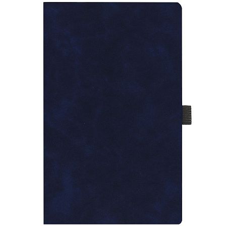 Ежедневник с гибкой обложкой, выполнен из материала Nubuck Touch, темно-синий XX, дополнен ляссе и петлей-резинкой для ручки черного цвета.