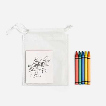 раскраски - бумага; мелки - воск; мешочек - спанбонд, плотность 80 г/м²