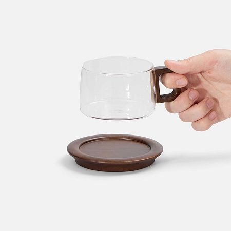 чашка - боросиликатное стекло; ручка, блюдце - дерево, орех