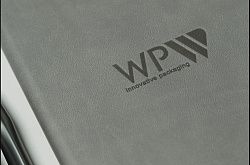 2) Слепое или блинтовое тиснение на ежедневниках. Простой способ вдавливания рельефного изображения при помощи специального клише. Популярная технология брендирования изделий из натуральной кожи или ее заменителей. В результате получается изображение того же цвета, что и обложка.