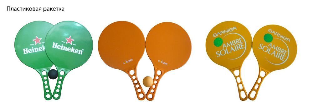 Ракетки пластиковые: две ракетки (33х20х0,3 см); один мяч (3,9 см, ПВХ).