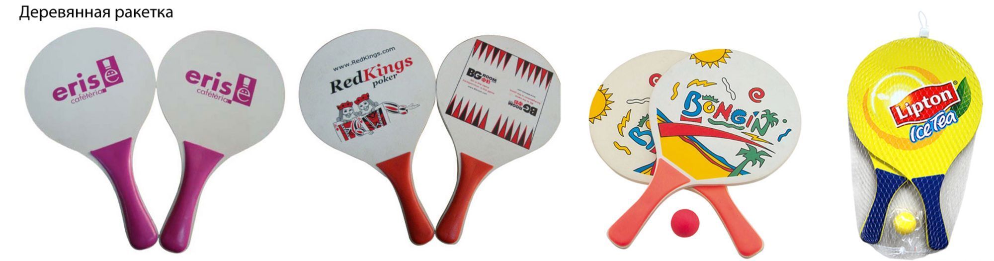 Деревянные ракетки: две ракетки (38х24х0,6 см, МДФ); один мяч (3,9 см, ПВХ).