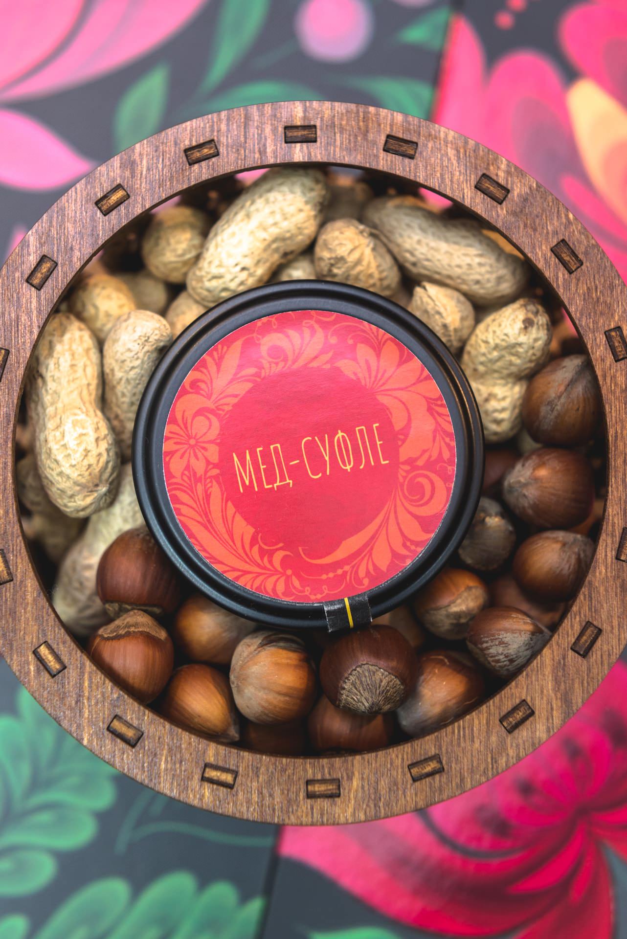Нанесение (включено в стоимость): открытка, наклейка на мёд-суфле, крышка шкатулки с вашим лого.