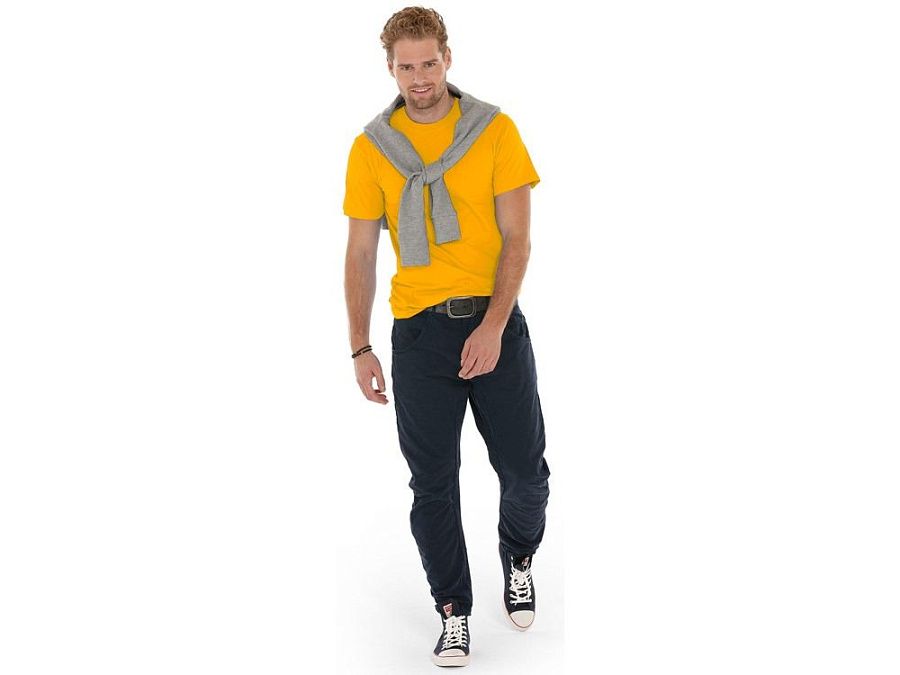 Мужская футболка сшита из натурального хлопка без боковых швов. Отлично подходит для нанесения рекламной информации. Возможна вышивка или трафаретная печать. Натуральный материал не вызывает раздражения кожи.