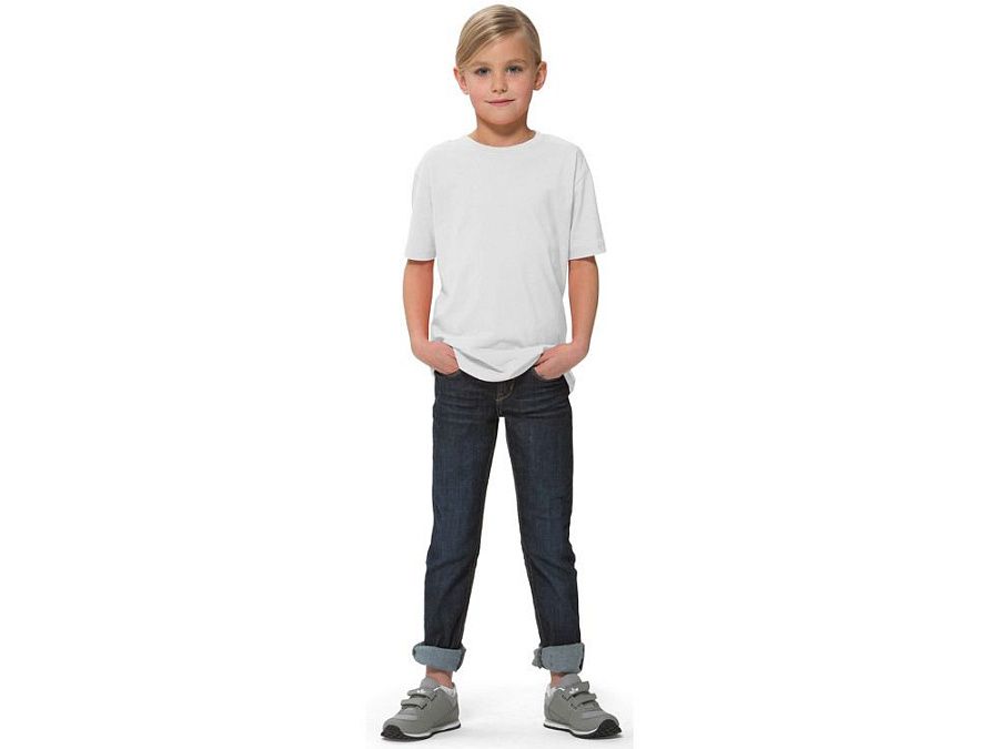 Детская футболка с короткими рукавами Ace. Детская модель со швами по бокам. Резинка с эластаном и двойной строчкой на воротнике. Лента от плеча к плечу. Однослойная джерси, 100% хлопок. 150 г/м².