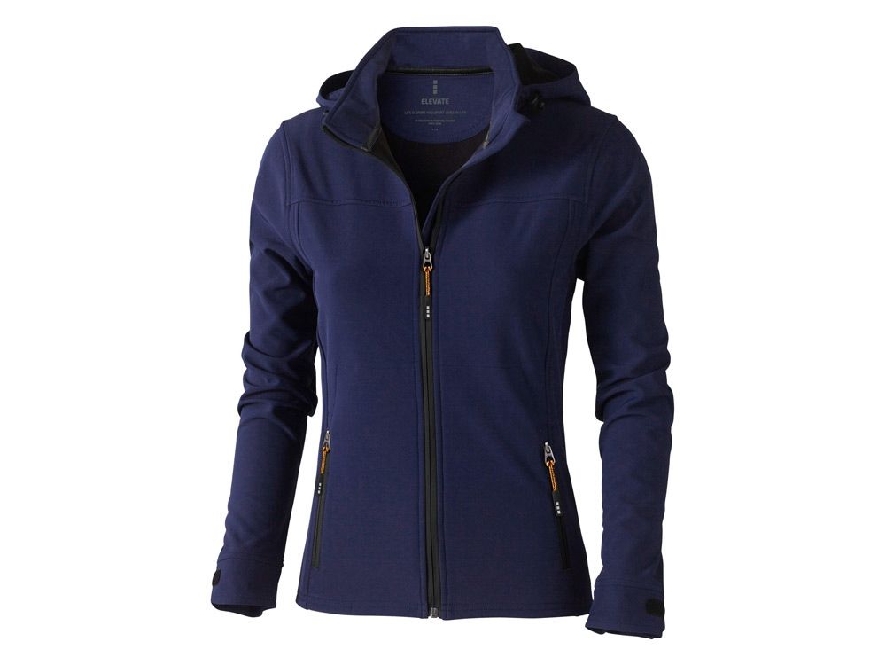 Женская куртка софтшел Langley. Стандартный покрой. Отстегивающийся капюшон на шнурках со стопперами. Обратная молния по центру и на карманах для рук. Регулируемые манжеты на липучках. Отражающий лого сзади. Водонепроницаемый 5000 мм. Дышащий 3000 мм. Ткань эластична в четырех направлениях. Ветронепроницаемая. Ремешки на собачку (второй комплект в цвете антрацит). Ткань из 90% полиэстера и 10% эластана, склеенного со 100% полиэстеровым микрофлисом. 300 г/м².